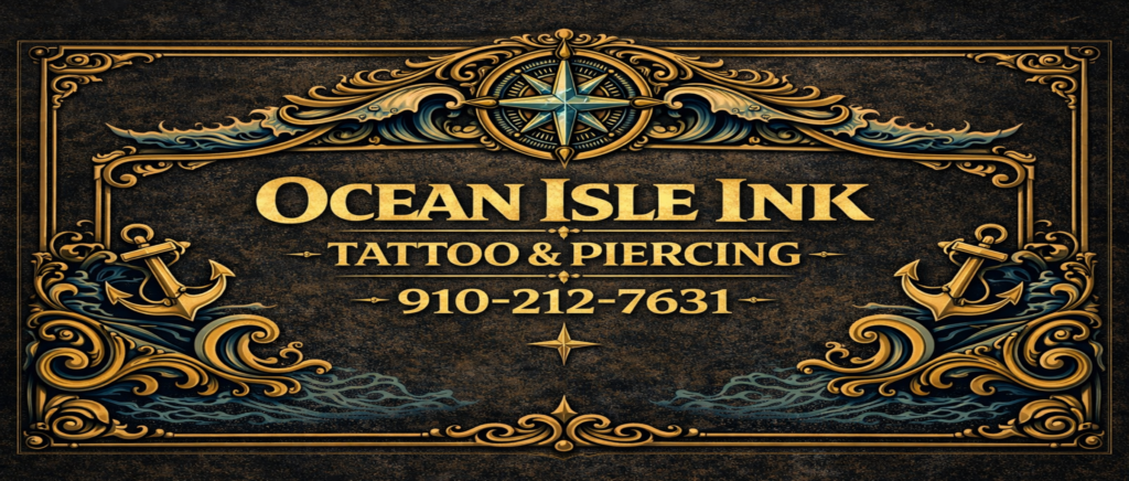 Ocean Isle Ink & Piercing is licensed by the Department of Human Services and fully certified in blood-borne pathogen protocols. We use only high-quality supplies, prioritize cleanliness and client safety, and strive to provide a professional, comfortable, and memorable experience for every client who walks through our doors.